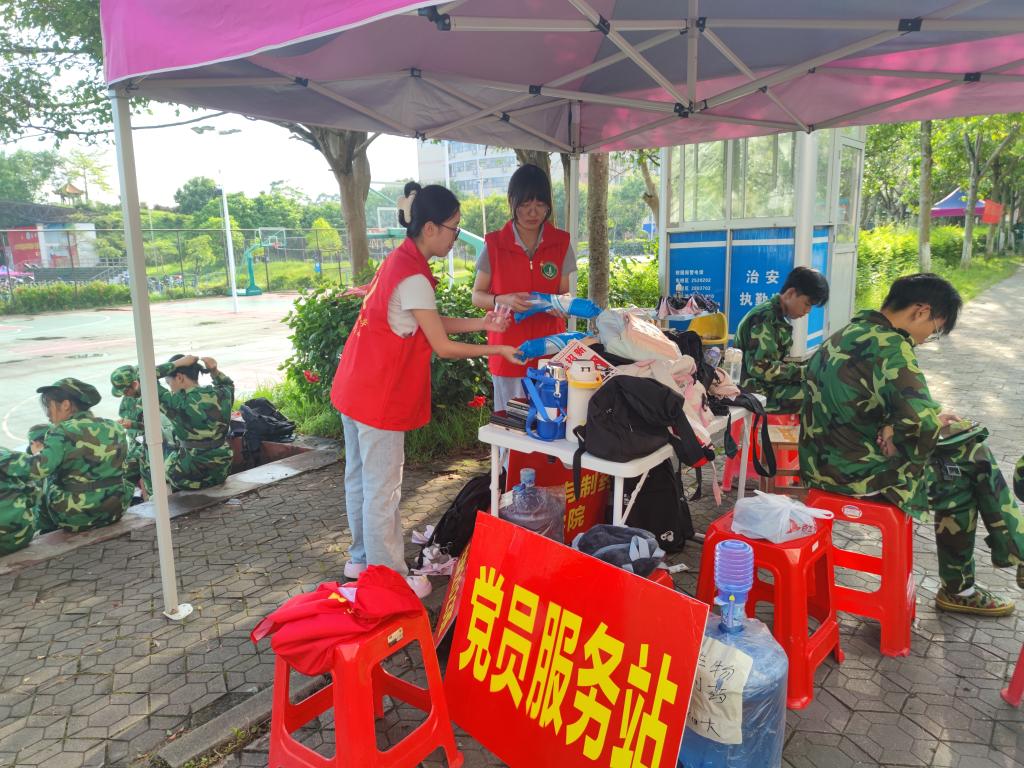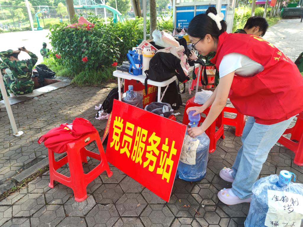 党员志愿者们秉持全心全意为人民服务的宗旨,以饱满的热情、负责任的态度为新生们做好后勤保障工作及突发事件处理工作,认真履行值班任务。新生军训期间,党员志愿者给予新生亲切的关怀,耐心问候新生军训的身体状况,叮嘱新生注意劳逸结合以提高自身身体素质,并鼓励新生要以坚持不懈的心态和吃苦耐劳的精神完成军训任务,争做有理想敢担当能吃苦肯奋斗的新时代好青年。